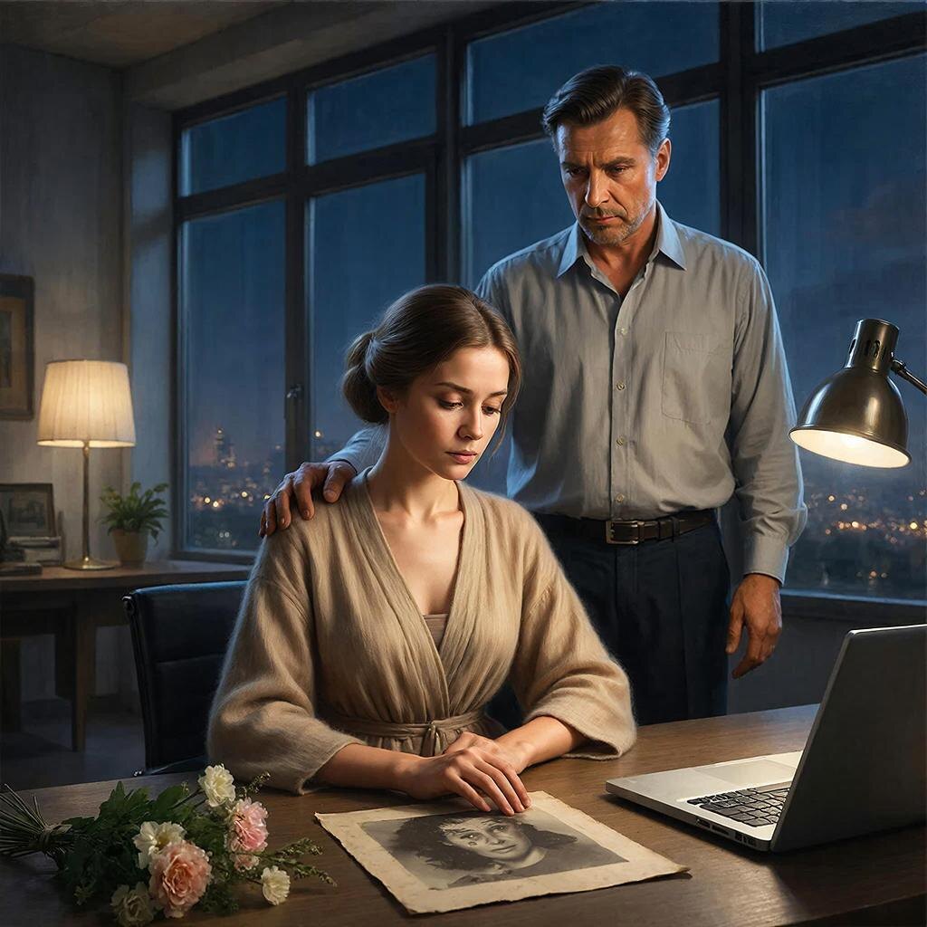 Однажды вечером Андрей нашёл её в кабинете. Она сидела в кресле, сжимая в руках старую, потрёпанную фотографию — единственное, что она забрала из того дома. По её щекам текли беззвучные слёзы.