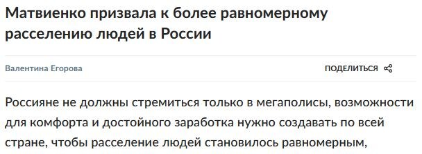 Если прочитать очень внимательно, то можно сделать вывод, что на данный момент "возможности для комфорта и достойного заработка по всей стране не создаются".