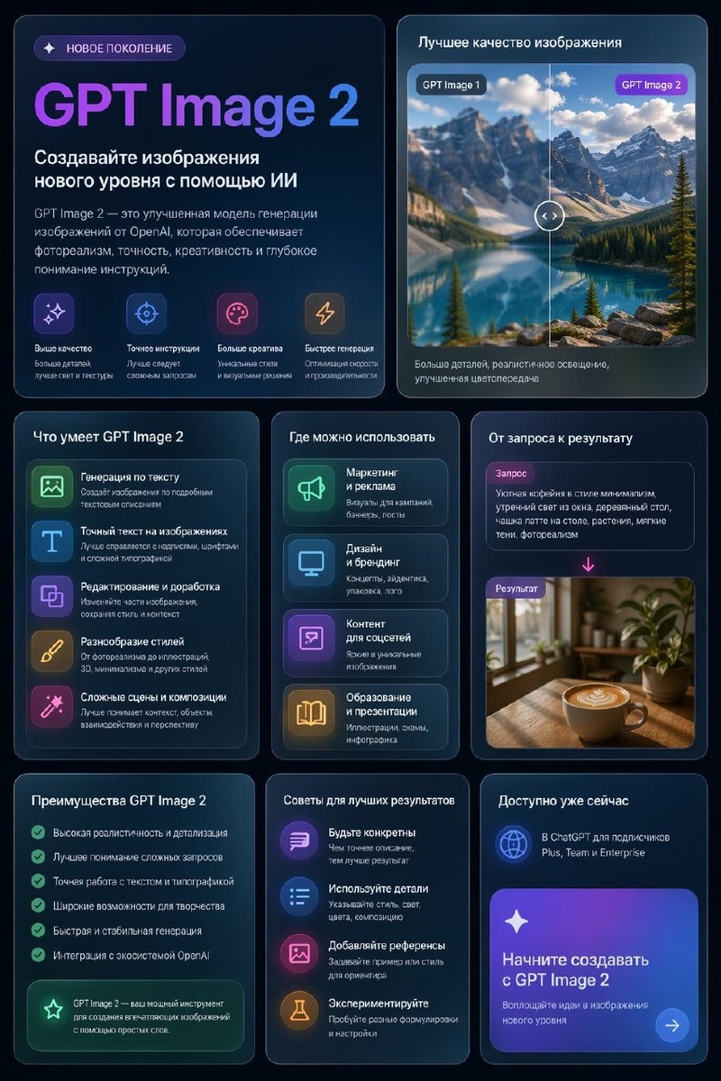 Честно говоря, я давно не тестирую все подряд нейронки. Когда что-то выходило последние пол года мне было «ясно-понятно» Понял, что вот так эта обесценка с отрывом от прогресса и происходят. Да и появился энтузиазм! Потестировал Gpt image 2, стало сильно интереснее в мелком тексте и Инфографике в целом. Для фотосетов все же есть траблы (переодеть без смены лица не смог дважды). Подготовил вам практикум на вечер в конце файлик на 20 применений. Модная инфографика в стиле Bento-box Generate an infographic using a bento-box grid system шт Russian language. Layout: modular rounded-rectangle containers of varying sizes. Content: [Использование GPT Image 2]. Style: minimalist, clean typography, frosted glass effect on containers, vibrant accent colors. High-quality digital design Пост с Дуровым Сделай пост в телеграм от Павла Дурова что он отмечает за заслуги блогера по нейросетям Шульгина Станислава и рекомендует подписаться на его канал @cg_stas. Нативно в интерфейсе поста Telegram ка