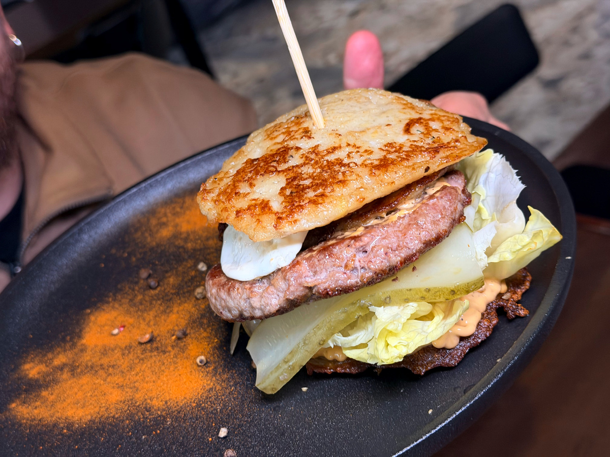 В этот раз новое заведение досталось самому обсуждаемому району «Минск Мир», где недавно затарахтела итальяшка «Чао Белла» со вкусной пастой. Рестобар «Язык» задумывался про белорусский вайб, ну или место, где повара готовят десять видов языка, но всё мимо. По интерьеру он с колосками и нашими традиционными орнаментами, а по еде солянка из городских рецептов с драниками. Каждый хочет повторить успех «Бульбашей» и «Литвинов», но всё мимо. К 1 мая встанут на белорусские рельсы «Литвины 4.0», «Бульбашы 3.0», «Лампа» и аутентичные «Палюшкi» в Раковском предместье. Белорусская кухня манит белорусов, судя по рекордному количеству сохранений обзора на новый деревенский ресторан «Дзякуй». Евродвушка с контактным баром, пухлыми диванами и комфортной атмосферой новой квартиры - чистой воды домашнее кафе. Как будто дед переехал в «Минск Мир» и заплатил дизайнеру, чтобы покрасивше было. Хорошо получилось, соседи оценят новеньких. Меню начинается с мидий и участившегося пульса, затем тартар, Цезарь