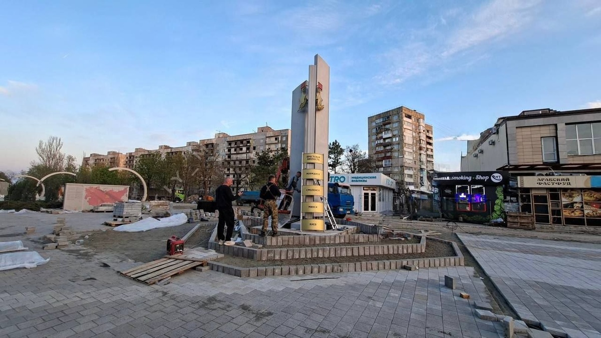 В Мариуполе монтируют новую стелу "Городам-героям" в сквере 40-летия Победы