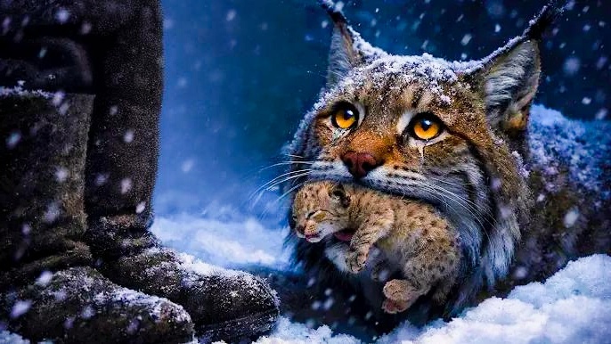 Рысь подняла голову, посмотрела на деда Егора. В её глазах не было злобы — только боль и мольба. Она перевела взгляд на детёныша, потом снова на человека. Будто говорила: «Забери его. Я не могу больше».
