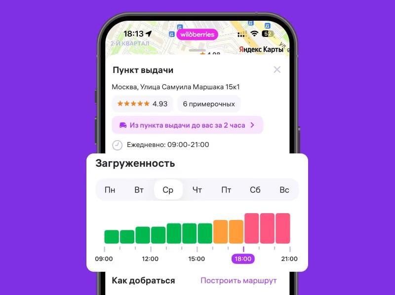 Пользователи маркетплейса Wildberries получили возможность заранее узнать, когда в выбранном пункте выдачи товаров меньше посетителей. В мобильном приложении и на сайте появилась новая функция — интерактивный график загруженности ПВЗ по часам и дням недели. Чтобы увидеть график, требуется выбрать ПВЗ на карте или открыть раздел с готовыми заказами и нажать на адрес пункта выдачи. Можно еще сделать платную услугу за сто рублей — обслуживание в ПВЗ без очереди🥂 ZENTECH в Максимке, ВК