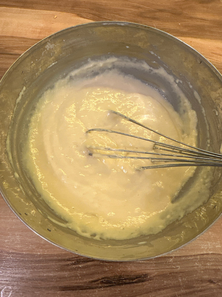 Консистенция теста. Оно должно напоминать густую сметану. Если тесто получилось жидким — добавьте ещё немного муки. Если слишком густым — пару ложек молока.