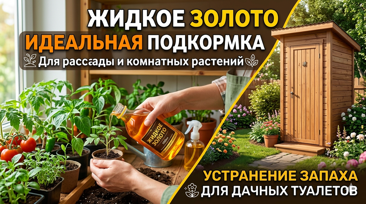 ЖИДКОЕ ЗОЛОТО для подкормки рассады и комнатных растений, для устранения запаха дачных туалетов.
