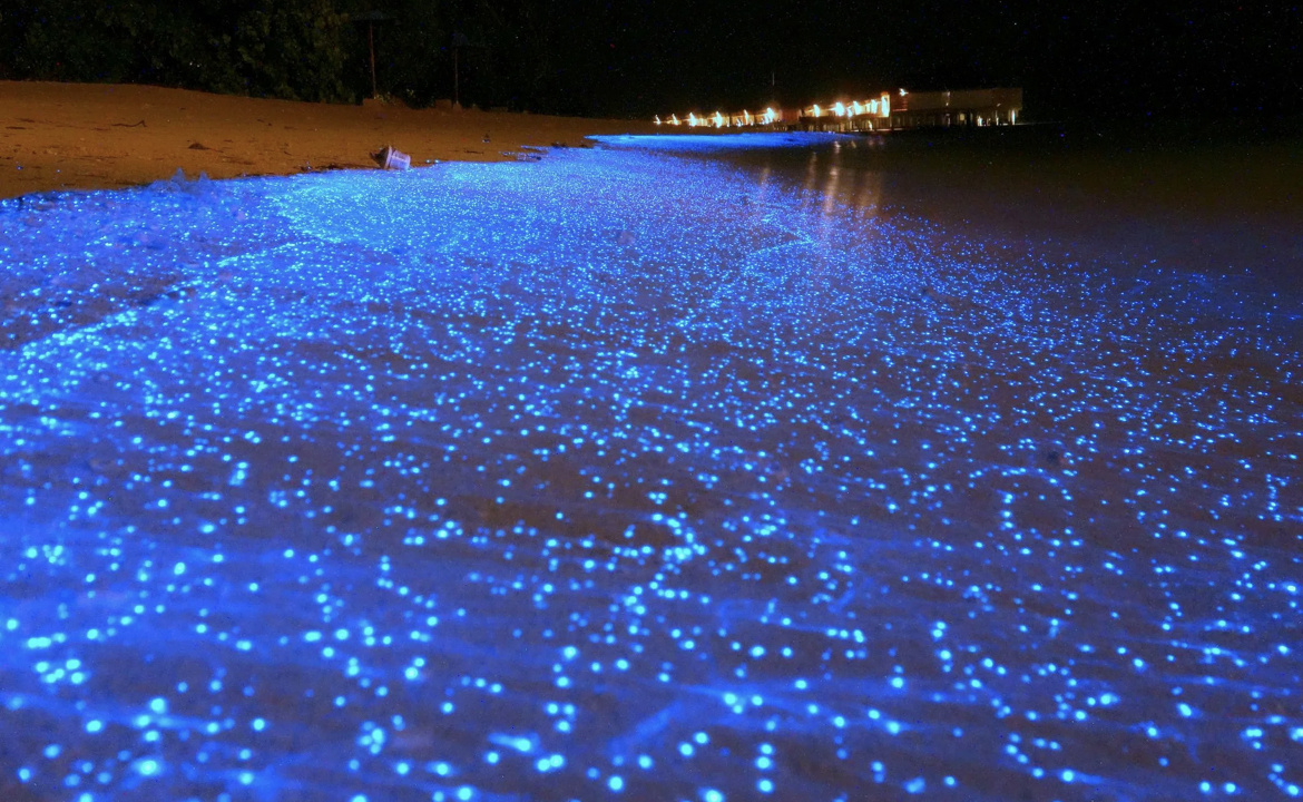 В поверхностных слоях морской воды обитает фитопланктон — микроскопические водоросли. Некоторые его виды способны излучать свет в ответ на механическое воздействие: движение волн, касание рыбы или лодки. Химическая реакция внутри клеток приводит к высвобождению энергии в виде холодного голубого свечения.