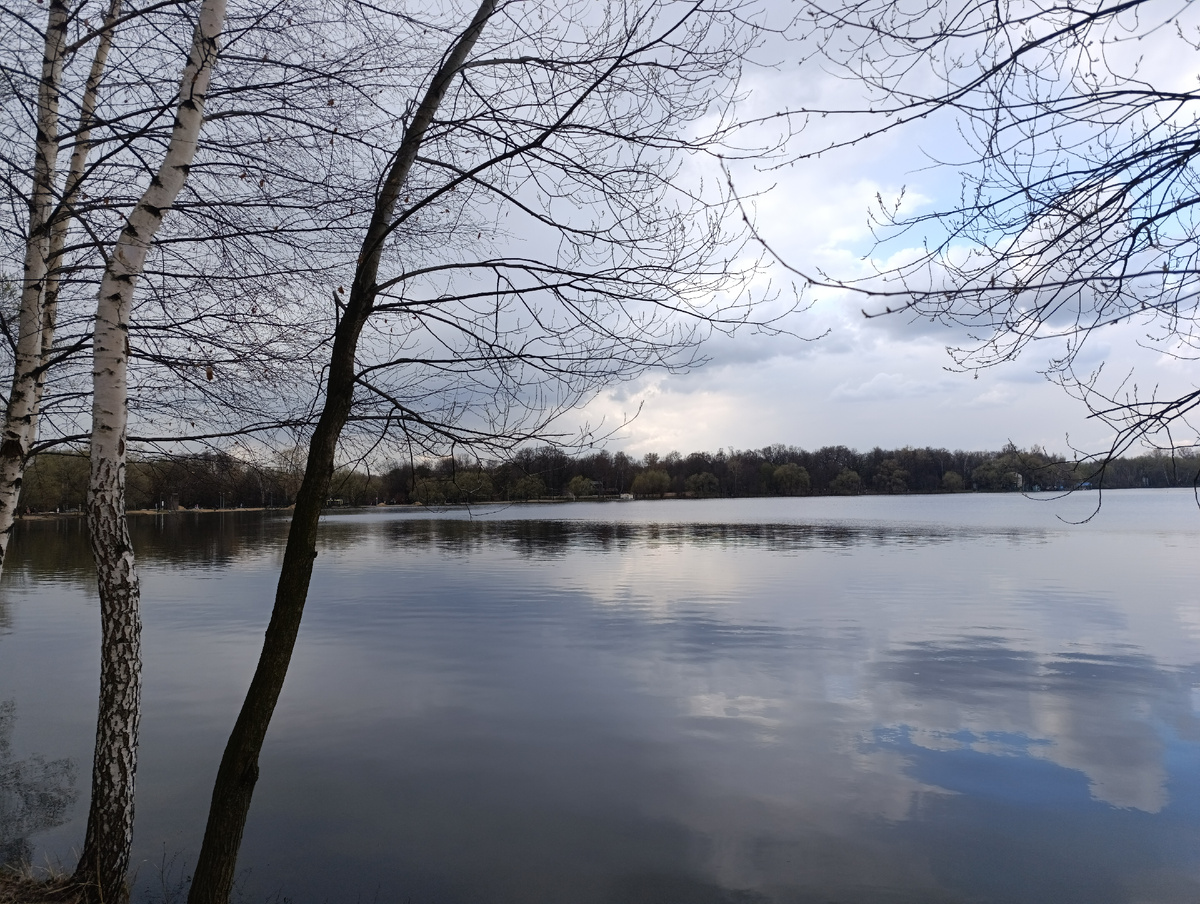В апреле мы прогулялись по берегам озера, хотя погода была не особо тёплая, отдыхающих было много.