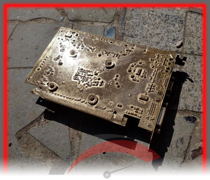 Радиатор был хорош. Накрывал не только GPU, но и все чипы оперативной памяти. Но сплав, из которого изготовлен радиатор, не поддавался обработке гравером с разнообразными насадками.