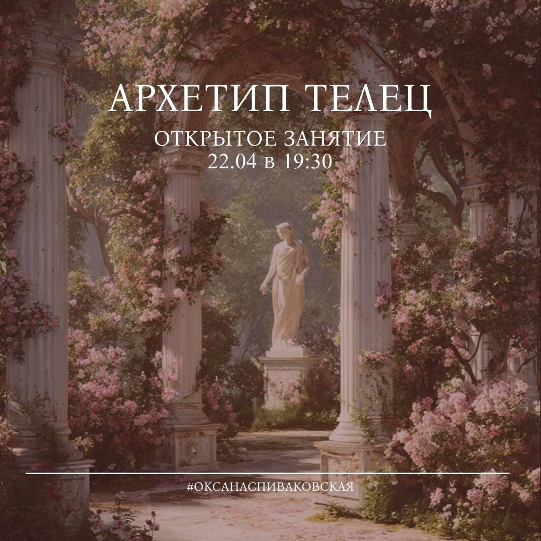 Об эфире рассказывает Оксана Спиваковская: Приближается период Тельца и это архетип логически следует за импульсивным Овном. Прекрасный повод для регулярного занятия с полевым терапевтом Ольгой Дроздовой и практик на тему периода. Если Овен – вспышка и манифест, то Телец - уплотнение материи и идей в навыки. Алхимики называли это стадией коагуляции. На занятии мы будем говорить о темах, которые патронирует сама Афродита Пандемос или «всенародная» и земная форма богини. И, конечно, делать практики. В отличие от Афродиты Урании (небесной, духовной любви), Пандемос — богиня плотной материи и прагматичных плотских желаний :«хочу тело», «хочу деньги», «хочу вкусно». Её храмы стояли рядом с рыночной площадью, где свершалась земные сделки. Маркеры актуальности активации архетипа Пандемос: ✔ Стыд за «низкие» желания (хочу больше денег и выше уровень потребления) ✔ Повторяющийся конфликт «духовное и материальное» ✔ Страх показаться жадной, похотливой, эгоистичной ✔ Паттерн: отдаю ресурс — не по