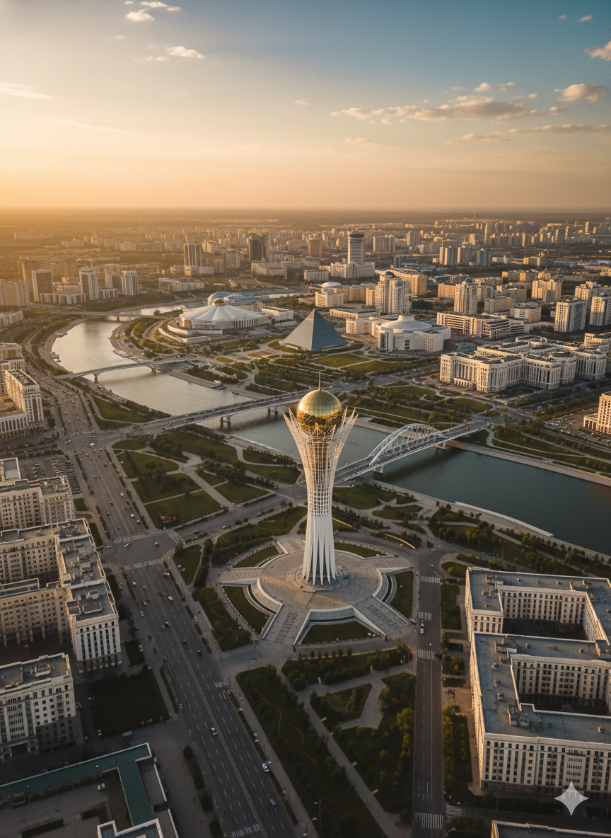 Главный символ Астаны и визитная карточка всего Казахстана — башня с золотым шаром на вершине, которую видно из любой точки нового города. Подняться на смотровую площадку — значит увидеть всю столицу разом: небоскрёбы левого берега, резиденцию президента, мечеть и бульвар с фонтанами.