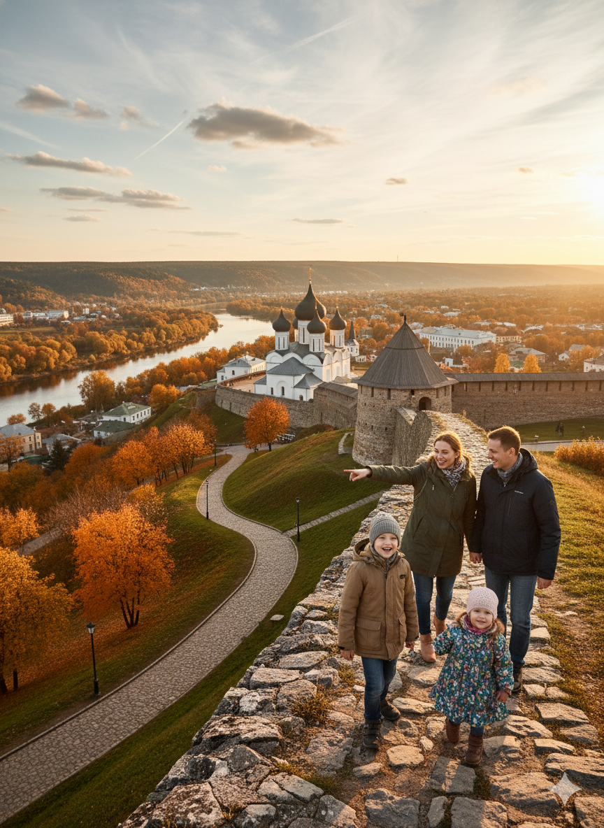 - Совет: начните с подъёма на вал — оттуда открывается лучший вид на Успенский собор.