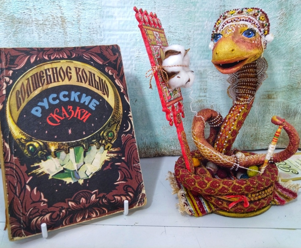 В проекте МОАК "ТЕАТРАЛЬНЫЙ СЕЗОН" - работа Анны Худяковой "Змея Скарапея" по сказке "Волшебное кольцо". Змея Скарапея — один из главных персонажей русской народной сказки «Волшебное кольцо» (в обработке Бориса Шергина и Андрея Платонова).