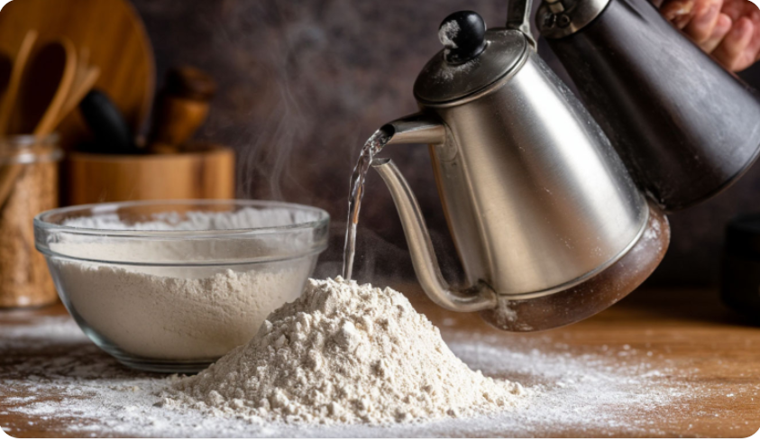 💥Кипяток в тесте — не ошибка и не странный кулинарный трюк. Это точный химический процесс, который превращает обычную муку в материал, способный удерживать пар. Без кипятка вы никогда не получите хрустящие эклеры с полостью внутри.