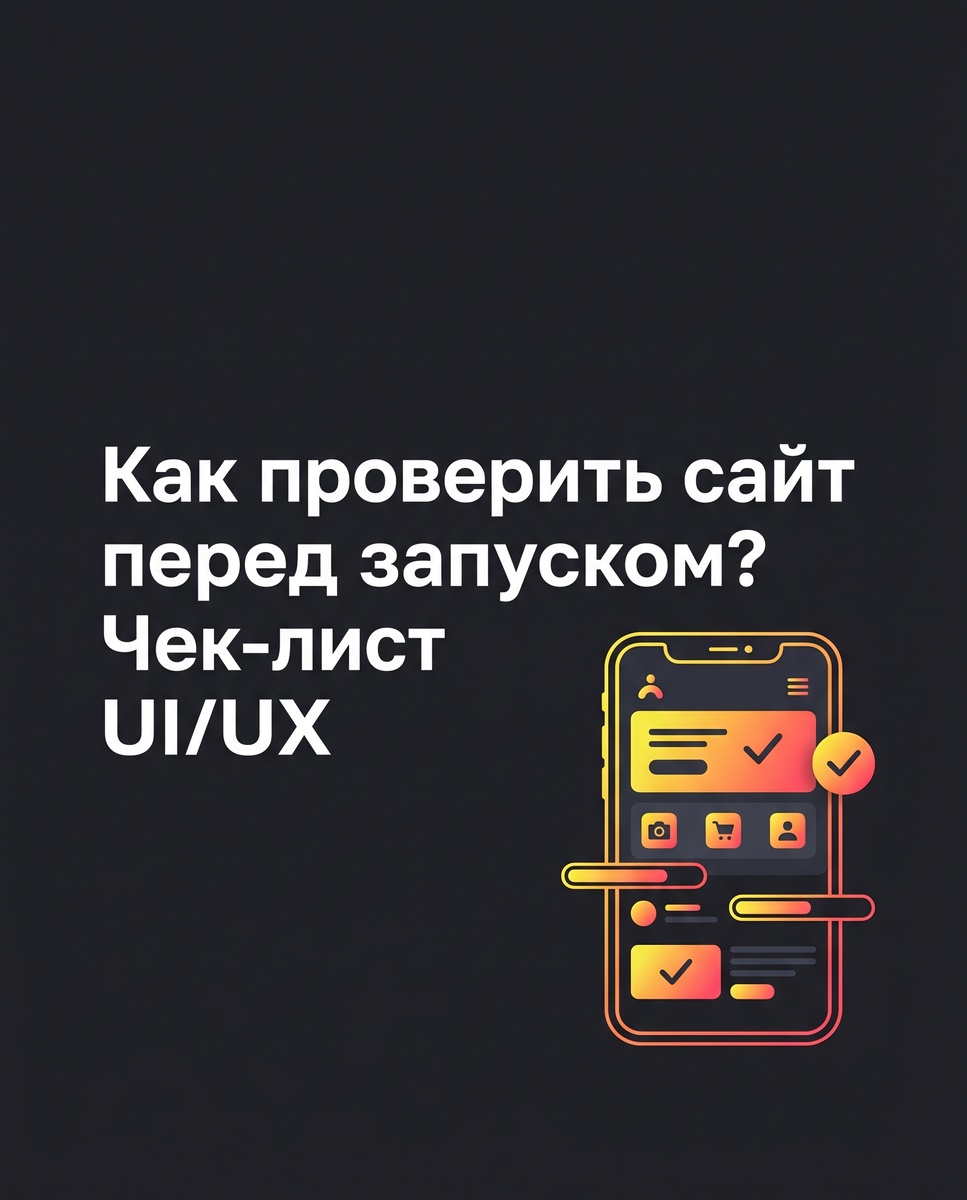 Перед тем как открыть сайт для пользователей и запустить трафик, важно убедиться, что его интерфейс не только красив, но и удобен. Пользовательский опыт (UX) и визуальная составляющая (UI) напрямую влияют на то, оставит ли клиент заявку или уйдет к конкурентам. Чтобы избежать досадных ошибок, используйте этот базовый чек-лист из 7 шагов. Пройдитесь по каждому пункту перед релизом проекта. Текст на сайте не должен превращаться в сплошную простыню. Пользователь должен легко сканировать контент глазами. Больше половины трафика сегодня приходит со смартфонов. Ваш сайт должен идеально работать на любых экранах. Цвет управляет вниманием пользователя. Используйте его стратегически. Пространство между элементами так же важно, как и сами элементы. Кнопка призыва к действию (CTA) — это дверь к вашей прибыли. Контраст работает не только на кнопках, но и в общей композиции. Профессиональный дизайн — это системный дизайн. Сохраняйте этот чек-лист, чтобы ваши проекты всегда выглядели дорого и принос