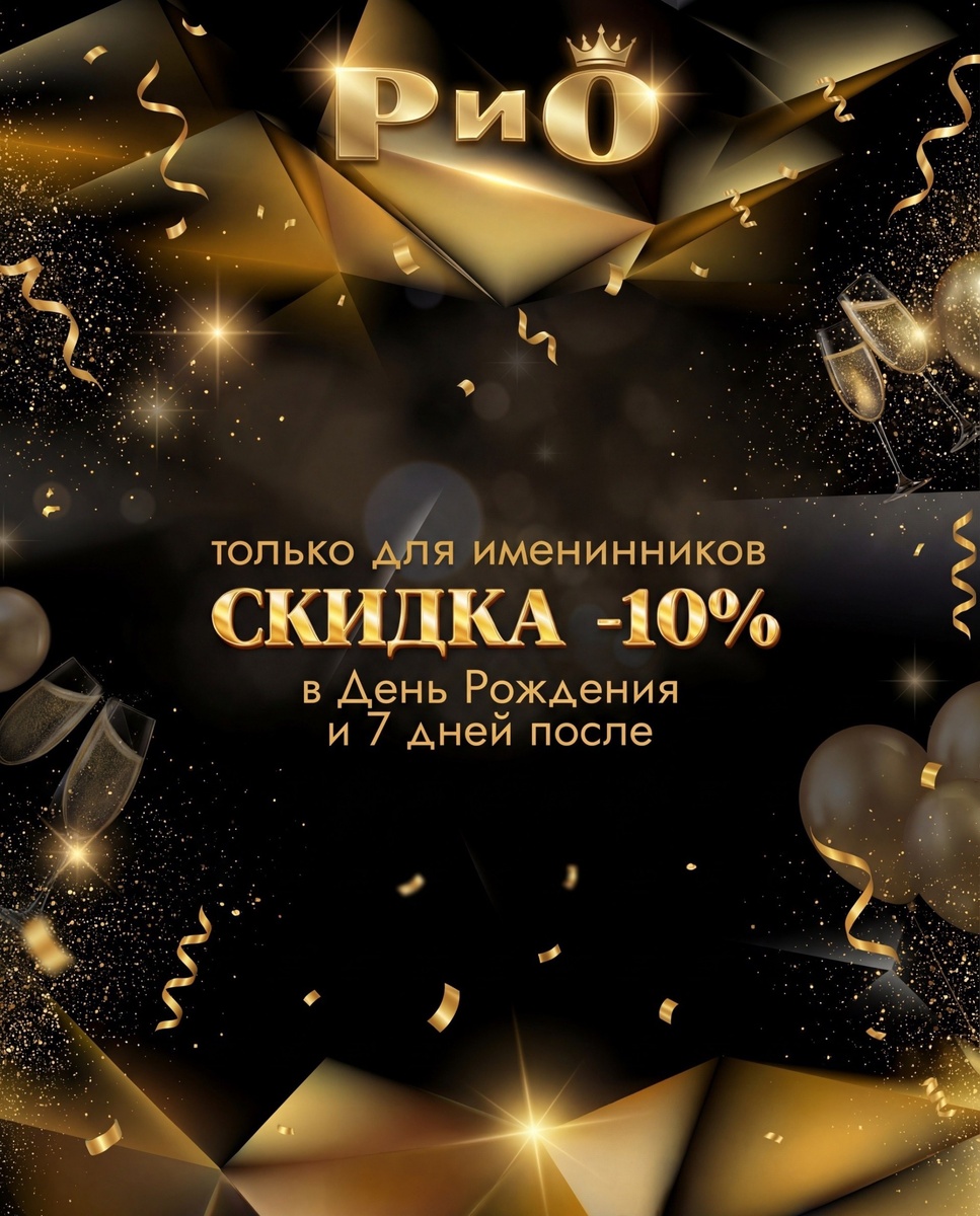 🥘 🤩 10% скидка на всё меню в ночном клубе РИО в День Рождения и 7 дней после