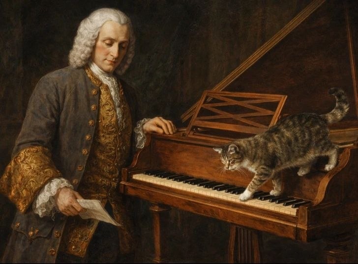 30) по праву считается жемчужиной клавирной музыки. Существует легенда, согласно которой кошка композитора по имени Пульчинелла однажды прогулялась по клавесину, выдав странную, скачущую последовательность звуков, которая якобы зацепила слух Скарлатти и легла в основу темы. Сама музыка будто подыгрывает этой истории: резкие, «прыгающие» интервалы в начале и правда напоминают беспорядочные кошачьи шаги по клавишам. Неудивительно, что в XIX веке за пьесой закрепилось прозвище «Кошачья фуга», хотя ни фугой в строгом смысле, ни «кошачьей» по авторскому замыслу она не была. И все же этот случай, реальный или придуманный, — редкий пример того, как кошка сумела войти в музыкальную мифологию и остаться там навсегда.