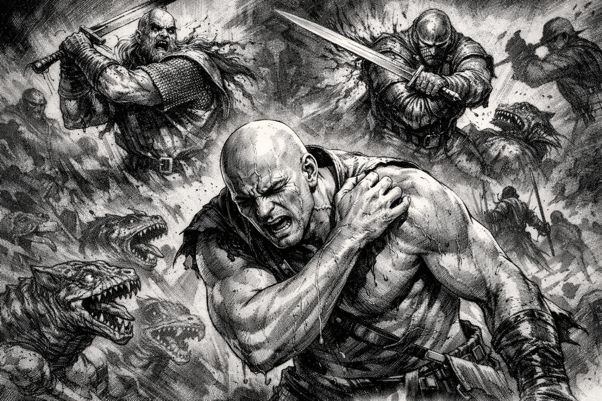 «Инструкторы» менялись в калейдоскопе образов: вот жилистый наёмник с мёртвым взглядом, вот закованный в латы рыцарь, вот ловкий дуэлянт. Я видел их движения, их финты и парирования, но я не видел их врагов. Вместо противников были лишь смутные, размытые силуэты, манекены для отработки ударов. Всё было предельно понятно, но картина была неполной, выхолощенной.