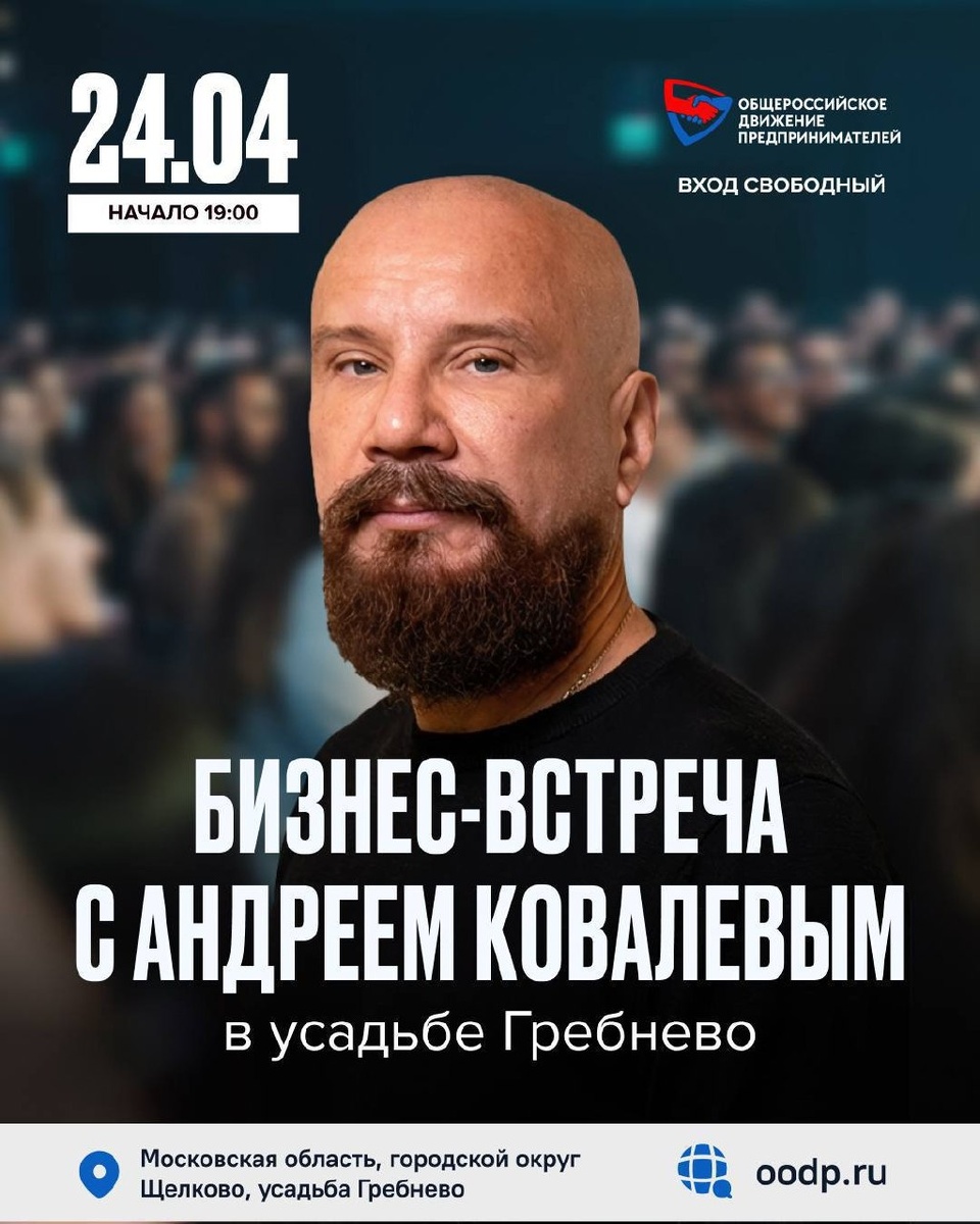 24 апреля в 19:00 состоится моя бизнес-встреча в усадьбе Гребнево
