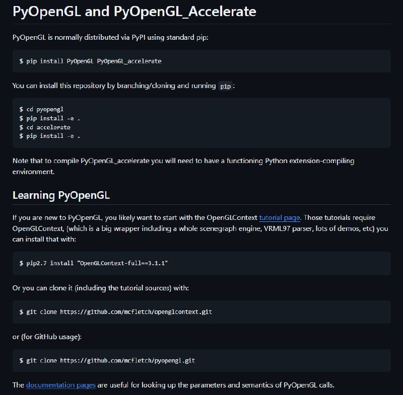 Предоставляет доступ практически ко всем функциям OpenGL и может работать вместе с такими инструментами, как Pygame, GLUT или Qt для создания окон и обработки ввода. 📌 Основные особенности: 🔵Полный доступ к OpenGL API — поддержка большинства функций OpenGL. 🔵Интеграция с GUI-фреймворками — работает с Pygame, PyQt, GLUT, Tkinter и другими. 🔵Аппаратное ускорение — использует возможности GPU для рендеринга графики. 🔵Поддержка расширений OpenGL — можно использовать современные графические функции. 🔵Pythonic-интерфейс — позволяет вызывать OpenGL-функции напрямую из Python. ➡️Установка библиотеки: pip install PyOpenGL PyOpenGL_accelerate 📱 Репозиторий ➡️Справочник Программиста. Подписаться