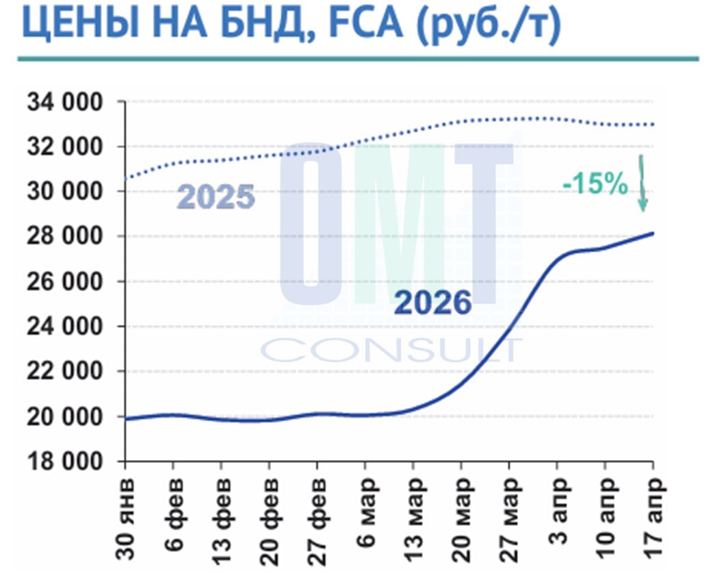 По оценке "ОМТ-Консалт", цены на дорожный битум в период с 13 по 17 апреля 2026 г. повысились в целом по РФ на 2,3% по сравнению с предыдущей неделей и составили 28 131 руб./т. Наибольшее повышение наблюдается в Центральном кластере (+3,1%). Битум и ПБВ 👉 Подписаться ОМТ-Консалт в MAX