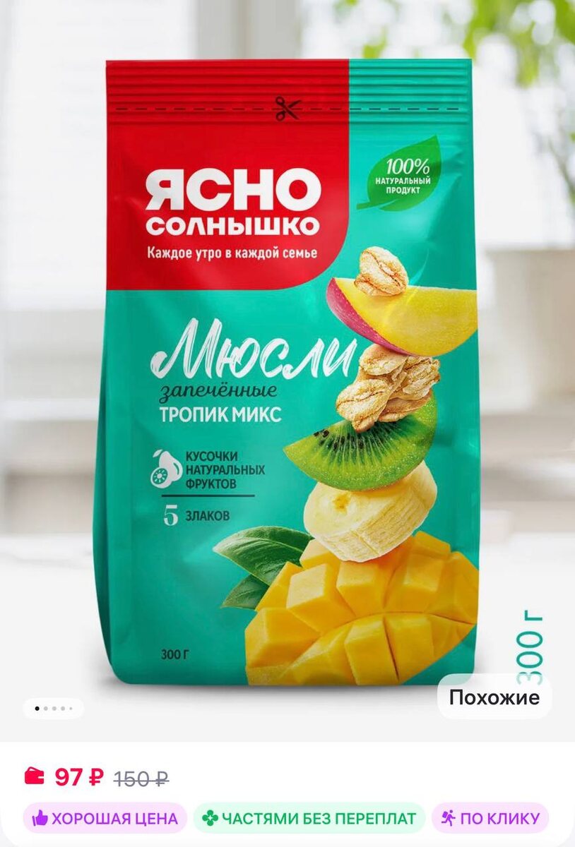 Ясно солнышко Мюсли запечённые с манго и бананом, 300 гр