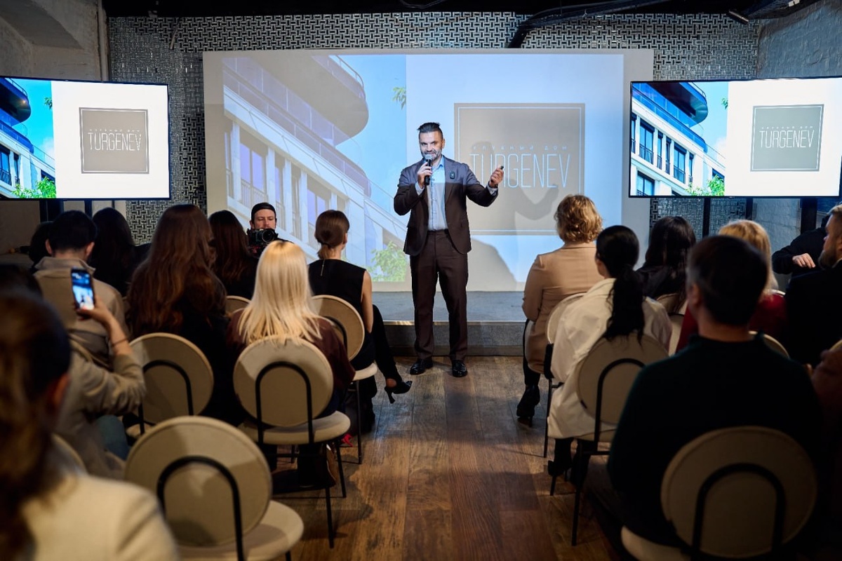 🌟 Совместно с основательницами дизайн-бюро Makedesign Дианой Карнауховой и Викторией Лукьяновой мы обсудили ключевые тренды дизайна люкс- и делюкс-сегментов: акцентный шпон, тактильные материалы и ИИ-персонализацию «умного дома». Поговорили о том, как запрос взыскательного клиента трансформируется в пространство с характером, где каждая деталь становится продолжением внутреннего мира владельца. Руководитель департамента маркетинга и продаж Алексей Непейвода рассказал о важном инфраструктурном элементе TURGENEV — переходной галерее, которая объединяет секции дома и позволяет резидентам пользоваться внутренней инфраструктурой, не выходя за пределы здания. Алексей Непейвода представил актуальный статус строительства инфраструктуры СПА, бассейна и фитнеса — черновые работы завершены, сейчас активно ведутся отделочные работы: монтаж керамогранита итальянского бренда FIANDRE в зоне бассейна и СПА, облицовка камнем Corian (Glossy White) душевых при зоне фитнеса и установка натурального г