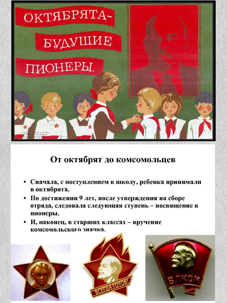 В моё детство в школах в этот день проводились торжественные линейки, концерты, посвященные дню рождения вождя революции. Именно в этот день младших Школьников принимали в октябрята, ребят чуть постарше – в пионеры, а старшеклассников – в комсомольцы. С какой гордостью мы тогда носили эти значки отличия: пионерский галстук, значок октябрёнка или комсомольца.