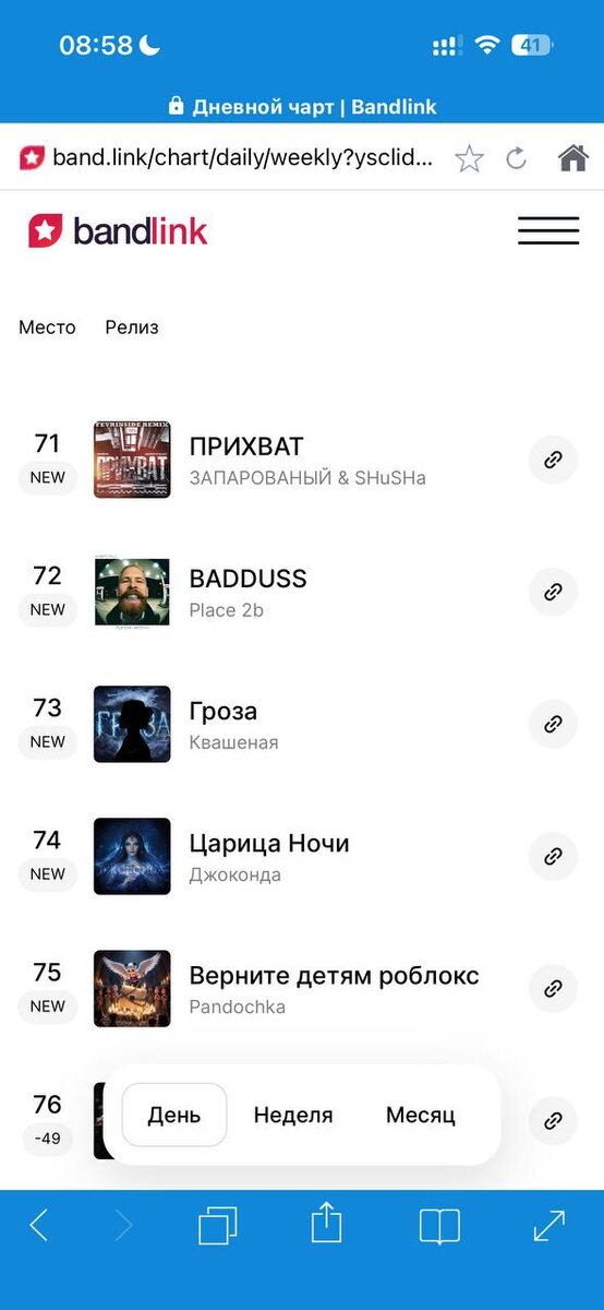 Мы в чарте бэдлинк на Яндекс Музыка 🤩