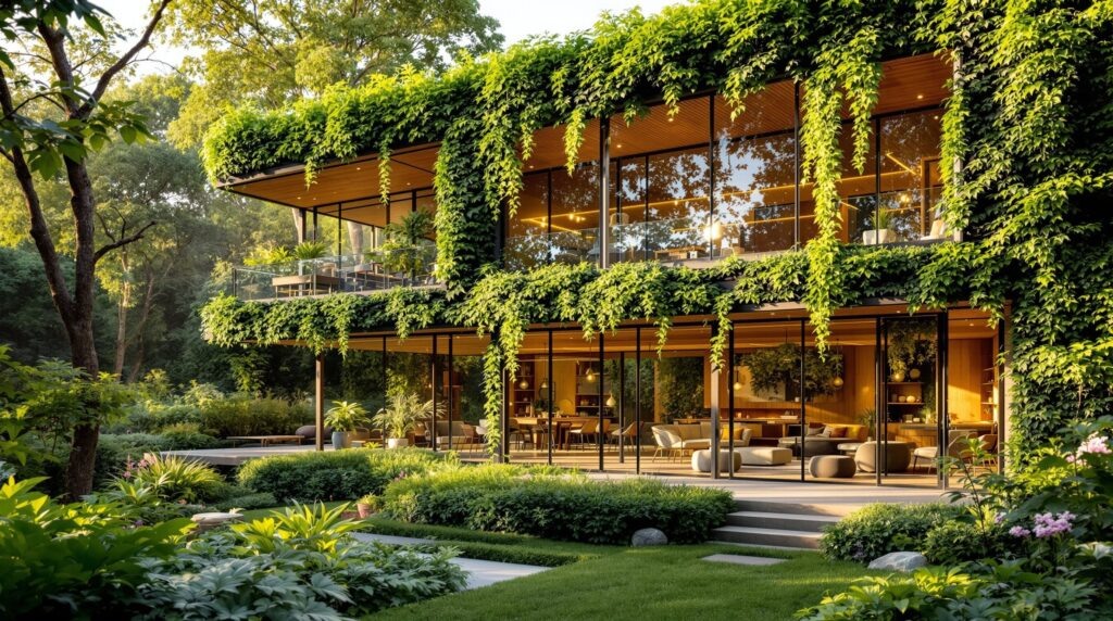 Экоархитектура отказывается от подхода «вырубил лес, построил дом, посадил газон». Здание вписывается в существующий рельеф, сохраняет зрелые деревья, создаёт условия для местной флоры и фауны. Зелёные стены и крыши работают как дополнительная изоляция, фильтруют воздух, поглощают шум и создают благоприятный микроклимат.