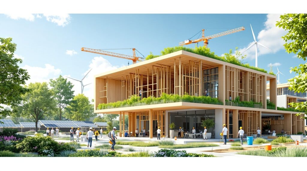 Цифровизация проникла во все этапы строительства. BIM-моделирование стало обязательным для серьёзных экопроектов, позволяя рассчитывать углеродный след ещё на стадии проектирования. Искусственный интеллект оптимизирует расход материалов, подбирает оптимальные решения под конкретный участок и микроклимат.
