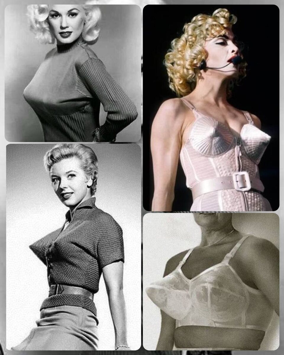 …. Бюстгальтер «пуля», который сражает мужчин наповал. В 50-е годы вошли в моду бюстгальтеры с коническими чашками. Они назывались «пуля» (или «торпеда»), видимо, за способность поражать мужчин в самое сердце:) Эти бюсты носили до середины 60-х годов. Грудь в таких «лифчиках» выглядела вызывающе. Мужчины шутили: мол, сначала идет бюст, а за ним женщина:) Бюст — это мягкая часть тела, поэтому с помощью него груди можно придать почти любую форму. Чтобы добиться конической формы, бюстгальтеры часто шили из клинышков, которые придавали груди нужный вид. Простые женщины носили лифчики из бязи. А обеспеченные дамы — из атласа и дамаста. 🇷🇺 Мы есть в MAX 💳Используйте электронную бонусную карту и получайте кэшбек до 15% обратно!