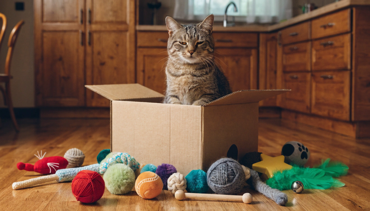 Знакомая картина. Вы стоите в зоомагазине и выбираете. Электрическая мышь, которая сама ездит по полу. Перо на пружине, которое само качается. Светящийся шарик. Интерактивный туннель с хрустящими краями. Берёте всё, приносите домой, раскладываете с видом человека, который сделал что-то хорошее. Кошка обходит каждую вещь по кругу, нюхает и уходит. Через десять минут она лежит в коробке из-под всего этого добра и смотрит на вас оттуда с полным спокойствием. Коробка бесплатная. Это происходит не потому что ваша кошка привередливая. Это происходит потому что большинство игрушек в зоомагазине сделано для хозяев, а не для кошек. Выглядит мило — продаётся хорошо. Работает — не всегда. Электрическая мышь, которая ездит сама. Автоматическое перо, которое крутится по кругу. Лазерная указка с таймером. Логика понятна: кошка развлекается, хозяин отдыхает. На деле интерес к таким вещам у большинства кошек живёт от нескольких минут до нескольких дней — и потом исчезает насовсем. Дело в том, что кошк