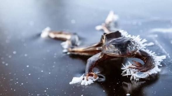 ❄️ Лесная лягушка размораживается без вреда для организма после целой зимней спячки 🧊 Когда температура опускается ниже нуля, тело лесной лягушки начинает замерзать. Кристаллы льда образуются в межклеточном пространстве, но не проникают внутрь клеток. Кожа, мышцы, глаза - всё покрывается льдом. Сердце останавливается, дыхание прекращается 🧪 Печень лягушки вырабатывает огромное количество глюкозы (до 10% от массы тела), которая действует как природный антифриз, чтобы лягуху просто не порвало изнутри кристаллами льда 🌱 Весной лягушка оттаивает за несколько часов. Первым начинает биться сердце, затем возвращается дыхание, а через 24 часа она уже прыгает как ни в чём не бывало 🔬 Учёные даже изучают этот механизм, чтобы разработать методы криоконсервации (заморозки) человеческих органов для трансплантации.