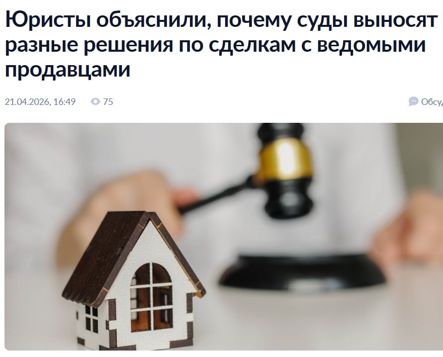 противоположные выводы. В связи с этим острота проблемы сейчас должна смещаться от обеспечения однообразия судебной практики в сторону совершенствования методики проведения освидетельствования сторон сделки — чтобы отклоняющиеся от нормы состояния можно было выявить до заключения договора купли-продажи, а не на стадии его оспаривания», — сказал в интервью ЦИАН Журналу член правового комитета РГР Николай Зырянов. На его взгляд, всем стала очевидна необходимость создания механизма, с помощью которого добросовестные покупатели могли бы не опасаться того, что последующие экспертизы могут легко опровергнуть первоначальные выводы специалистов об отсутствии каких-либо отклонений в поведении продавца, которые исключают возможность заключения договора купли-продажи. #прессцентрРГР