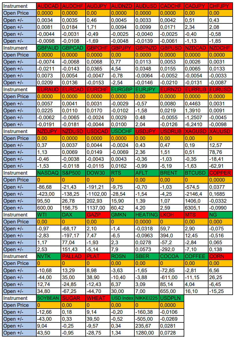 Здравствуйте, уважаемые трейдеры! С Вами снова Александр Борских. Подготовил для Вас свежую информацию. Очередные сезонные тенденции на среду 22 апреля 2026 по основным мажорам финансовых рынков. Весь перечень анализируемых активов указан ниже в общем количестве 62 инструмента. Здесь Вы найдете активы рынка Форекс, популярные активы Московской биржи, не менее популярные активы Чикагской биржи СМЕ и мажор криптовалютного сегмента - Биткоин, за которым следуют все альткоины. Первый блок информации с зонами лимитных покупок и продаж. Данная информация включает в себя не только статистический показатель волатильности каждого актива, но и ближайшие опционные страйки с учетом премий за риск (Для верных расчетов рекомендуется просмотреть теоретическое видео в свободном доступе - Как использовать блок сезонности). А теперь сам блок информации №1: Второй блок информации с направленным вектором движения и вероятностями (внимательно обращаем внимание на цену открытия каждого актива. Обязательно д