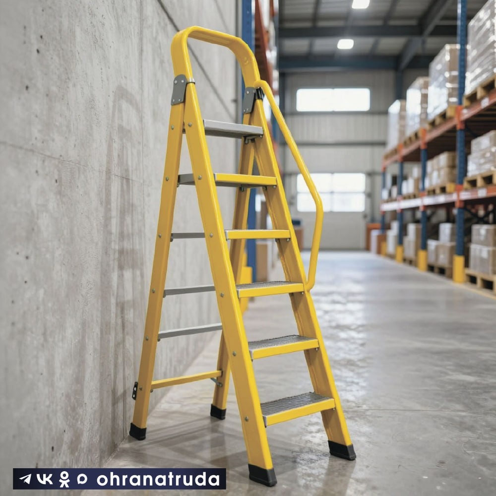 🪜 Конструкция должна исключать сдвиг и опрокидывание. На нижних концах - оковки с острыми наконечниками (для грунта) либо нескользящие башмаки (для гладких поверхностей: паркет, металл, плитка, бетон). Верхние концы лестниц, приставляемых к трубам или проводам, снабжаются крюками‑захватами. ☝️ Запрещается: ✅ работать с двух верхних ступенек стремянок без перил/упоров; ✅ находиться на лестнице более чем одному человеку; ✅ поднимать/опускать груз или оставлять инструмент на лестнице; ✅ устанавливать под углом > 75° без крепления в верхней части; ✅ использовать на лестничных ступенях (только на площадках между этажами); ✅ работать над движущимися механизмами, с электро‑/пневмоинструментом, при сварке, натяжении проводов и т. д. без систем безопасности. 👀 Перед каждым применением - осмотр ответственным исполнителем работ. Периодические испытания: деревянные - каждые 6 месяцев, металлические - каждые 12 месяцев. На всех лестницах должны быть: инвентарный номер, дата следу