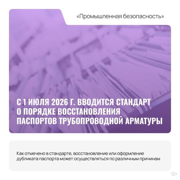 📎 ГОСТ Р 72600-2026 определяет порядок восстановления паспорта и оформления его дубликата на все виды и типы трубопроводной арматуры