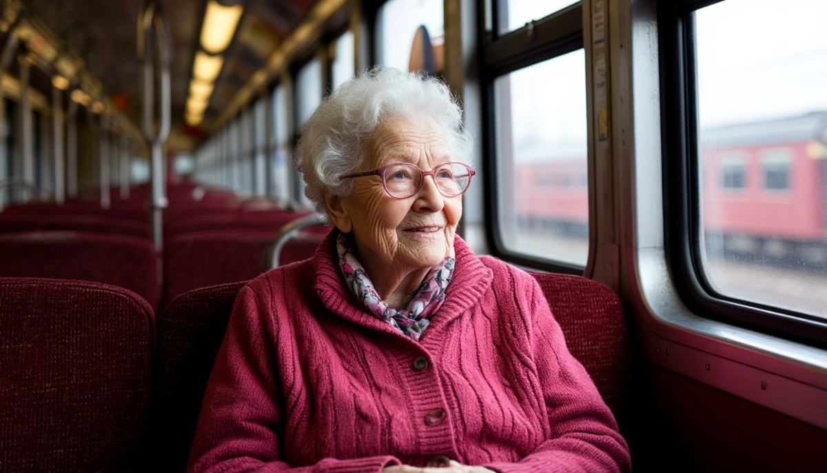 В купе вошла женщина лет шестидесяти пяти — невысокая, плотная, в выцветшей шерстяной кофте и длинной юбке. На голове — платок с мелкими розами, на пальцах — несколько простых колец. В руках — холщовая сумка и старый чемодан.