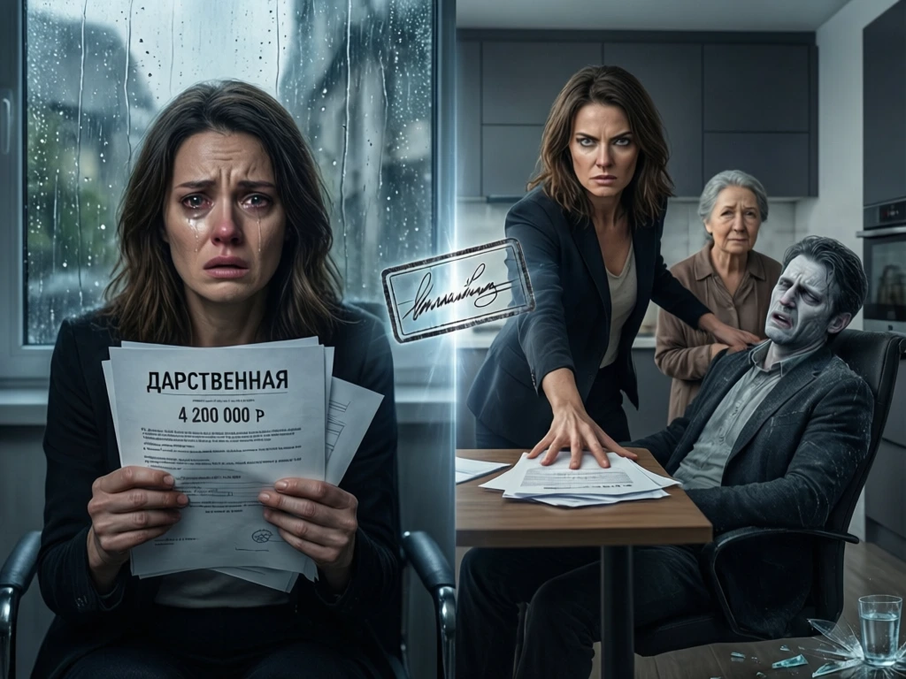 А я просто сидела. И понимала — он знал. Всё это время знал. Вечером я положила перед ним два документа. Дарственную — и выписку из банка на 4 200 000 ₽.