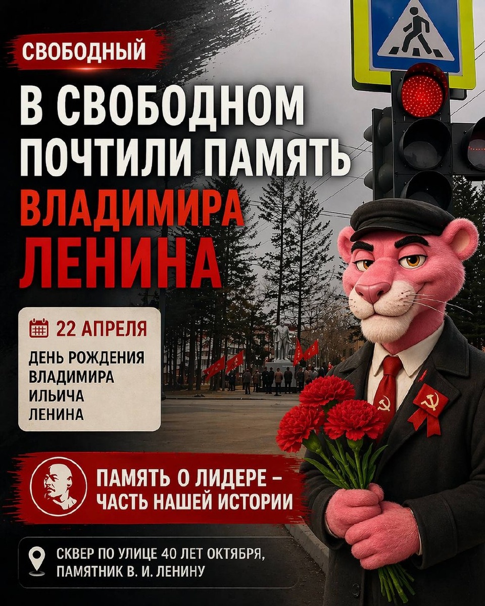 Сегодня, 22 апреля, в Свободном прошла памятная акция, приуроченная ко дню рождения Владимира Ильича Ленина. В сквере по улице 40 лет Октября, возле памятника, собрались представители коммунистической партии и жители города. Участники мероприятия почтили память исторической личности, возложили цветы и выразили уважение к его роли в истории страны. Подобные встречи традиционно проходят в этот день и собирают людей, для которых важно сохранить историческую память и преемственность поколений. ПОДПИСЫВАЙТЕСЬ НА НАС В ПРОЧИХ СОЦИАЛЬНЫХ СЕТЯХ ЧТОБЫ НЕ ПОТЕРЯТЬСЯ 📱 МАХ 📱 ВК 📱 Telegram 📱 Оk