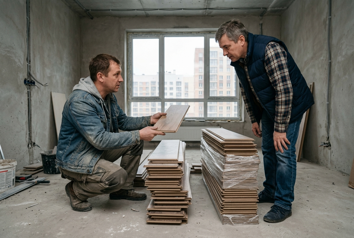 Интересуется Алексей С. из Марфино: Хотим купить ламинат б.у. Как выбрать правильно, чтобы потом не пожалеть? Отвечаем Сразу заметим, что покупать не новый ламинат - достаточно скользкая и рискованная тема, потому что там практически наверняка какая-то часть замков будет повреждена. Знаем случай, когда продавец попросту срезал сильно попорченные торцевые замки и с честным видом потом рассказывал сказки, что это такой специальный ламинат - беззамковый. И покупатель пришел к нам с этой несчастной плашкой и вопросом: как это уложить. Поэтому, наверное, в первую очередь надо смотреть не только на товар, но и на продавца. Очень часто это те, кто купил квартиру в новостройке с отделкой, но ламинат от застройщика им не понравился, они его разобрали и хотят, чтобы кто-то его вывез и желательно приплатил. Еще чаще такой ламинат продают ремонтные бригады. Тот и другой вариант, прямо скажем, не очень. Ламинат изначально был не премиум-класса, а его часто выламывают в спешке без лишних нежностей.