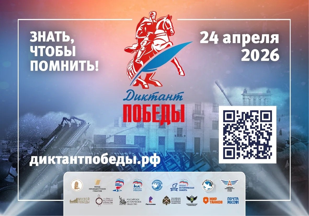 ! 🇷🇺 24 апреля 2026 года — международная акция «Диктант Победы»! Это не просто тест на знания, а настоящая дань памяти героям, которые подарили нам свободу и будущее. Присоединяйтесь к тысячам единомышленников по всему миру: проверьте себя, почтите подвиг и сохраните историю для поколений! Регистрируйтесь прямо сейчас: диктантпобеды.рф #ДиктантПобеды #ДиктантПобеды2026 #ИсторическаяПамять