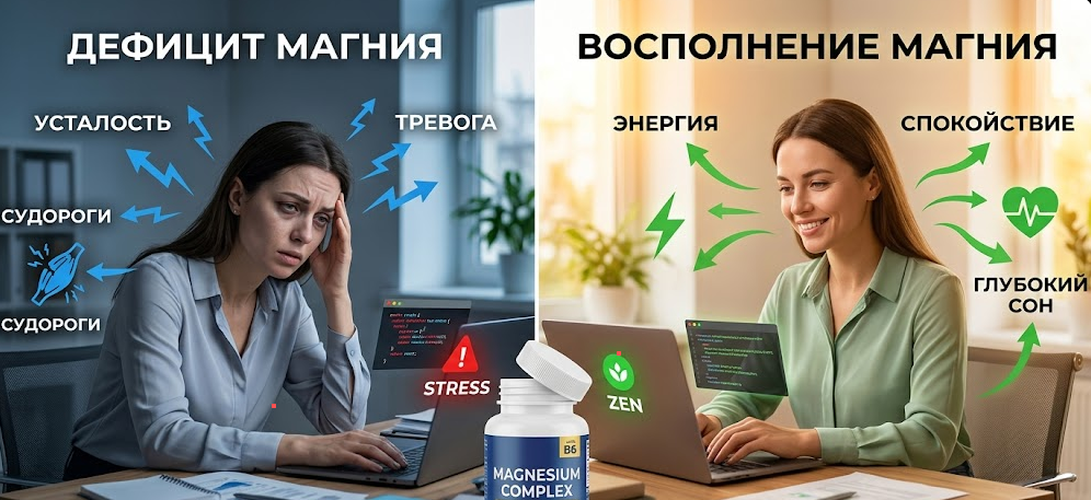 Знакомая и очень обидная картина: вы просыпаетесь утром уже уставшим, словно всю ночь разгружали вагоны. В течение дня вы заводитесь с пол-оборота, срываетесь на близких или коллег из-за пустяков. К вечеру у вас начинает предательски дергаться глаз или сводит икры, а когда вы наконец-то ложитесь в кровать — часами ворочаетесь, не в силах остановить бесконечную «бетономешалку» тревожных мыслей в голове.