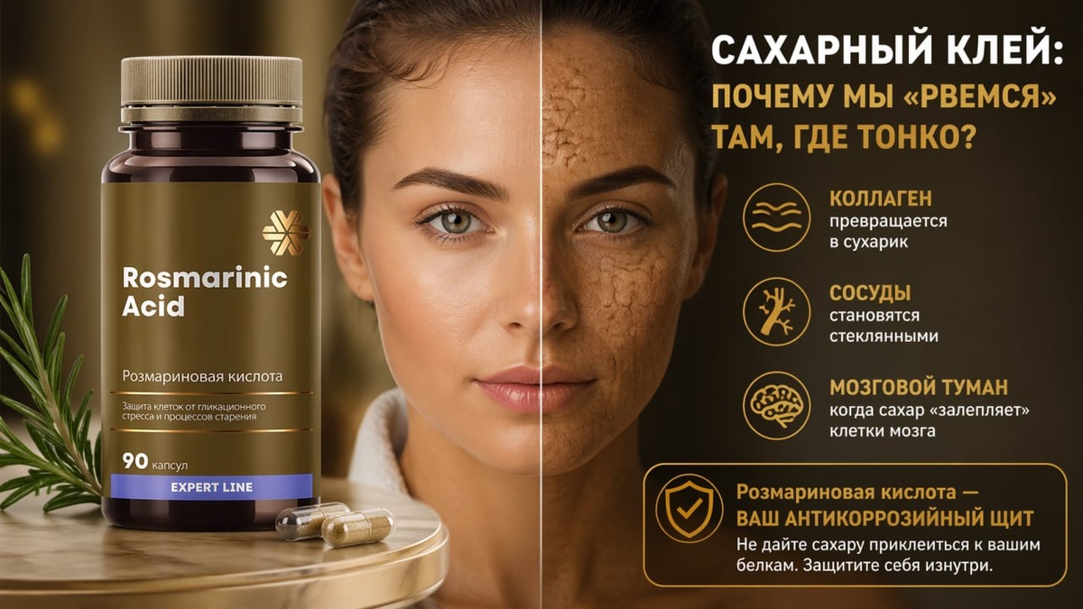 ? 🥨🥴 «Ну ем я булки, и что? Живая же!» - знакомо? Пока ничего не болит, кажется, что все эти рассказы про сахар - просто шум. Но давайте заглянем под капот нашего организма. Представьте, что ваше тело - это сложный механизм с гибкими деталями (белками). Сахар в этом механизме работает как разлитый сироп. Сначала он просто липкий, а потом высыхает и превращает всё в монолит. Это и есть гликация. Что происходит на самом деле, пока вы «не замечаете»: Коллаген превращается в сухарик. Ваши белки кожи должны быть как пружинки, а сахар делает их хрупкими. Отсюда те самые заломы и «уставшее» лицо. Сосуды становятся стеклянными. Вместо того чтобы мягко качать кровь, они становятся жесткими. Сердцу приходится работать в два раза сильнее. Мозговой туман. Когда сахар «залепляет» клетки мозга, они начинают тупить. Вот откуда это чувство «вроде проснулся, а уже устал». Мы этого не видим глазами, как не видим, как ржавеет труба внутри стены. Но когда труба лопается - становится поздно. Розм