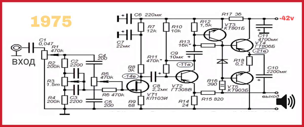 Эта схема 1975 года сочетает простоту конструкции с достойными характеристиками, что делает её актуальной даже сегодня.