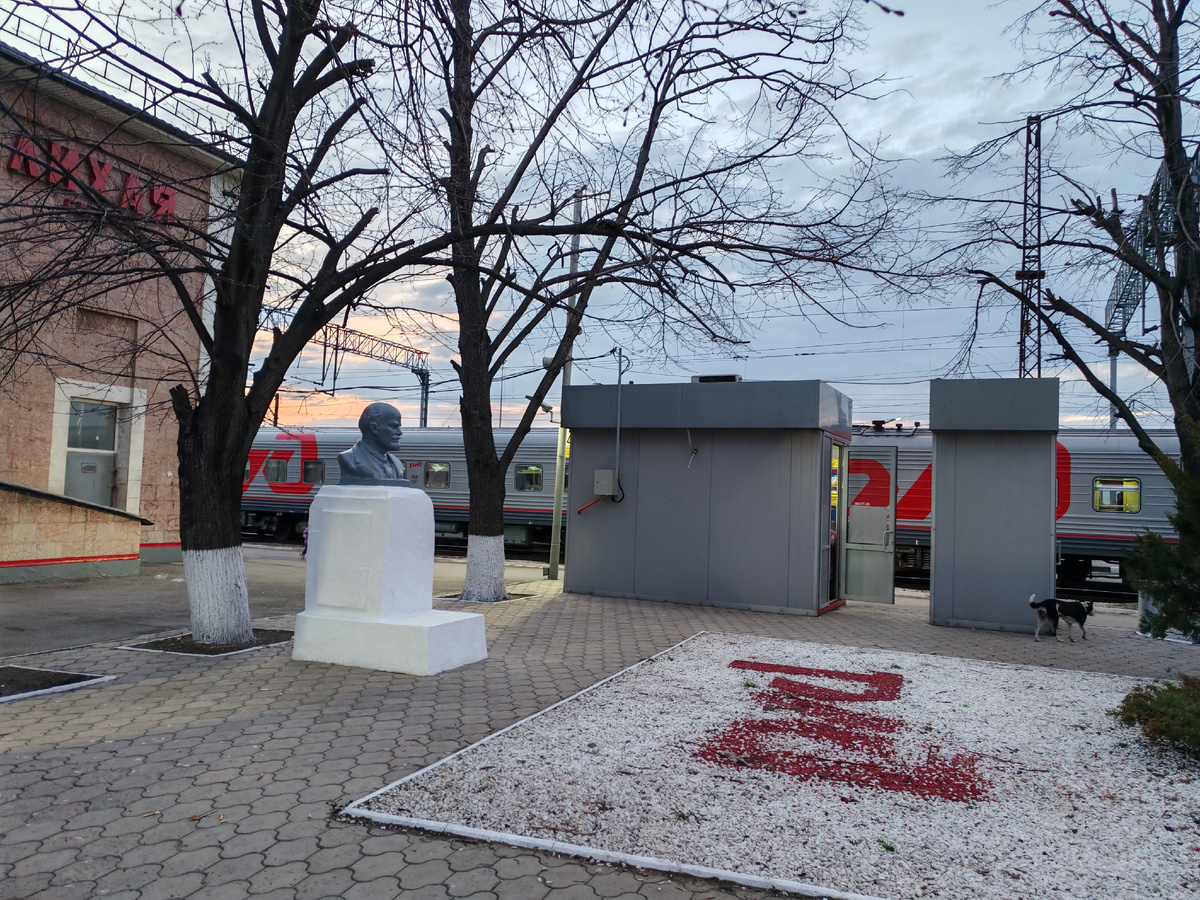 Один из наших новых Ильичей был нам и встречен на станции Лихая, где мы были во время возвращения из весеннего отпуска из Сочи (меньше месяца назад, писала здесь). Установлен он рядом со зданием вокзала.