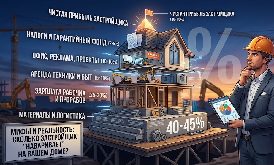 Мы разберем по косточкам, куда утекают ваши деньги, почему дом невозможно посчитать «по стоимости кирпичей» и какая чистая прибыль на самом деле оседает в карманах застройщика.