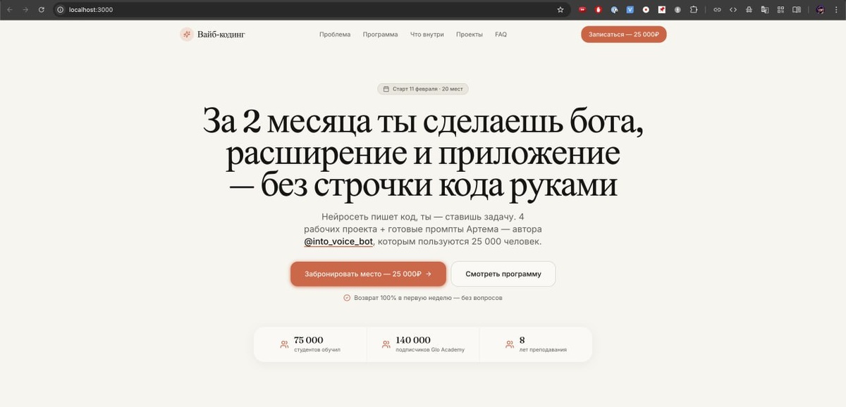 Вот например, мой сайт в стиле Антропиков и Claude Code 😁 Фраза заказчиков "хочу как у Apple" обрела новый смысл. Теперь можно 😌