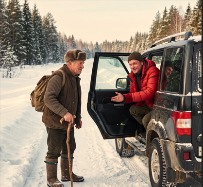 «Садись, дед, довезем с ветерком!» — усмехнулся пассажир, приоткрывая заднюю дверцу. — «Замерзнешь ведь тут совсем. Закидывай мешок».