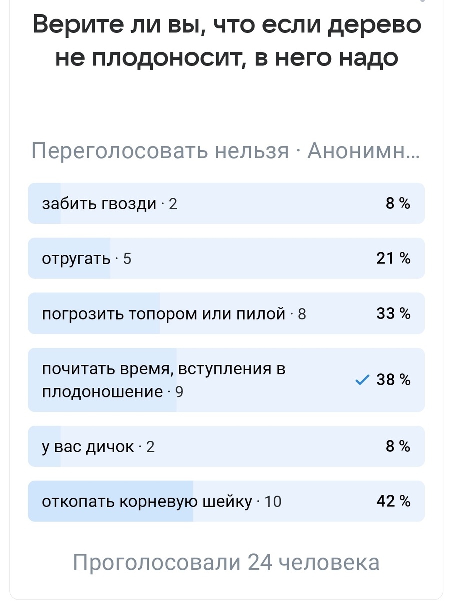 В своём блоге в ВК я провела опрос: как заставить дерево зацвести?.. Вот так распределились ответы!
